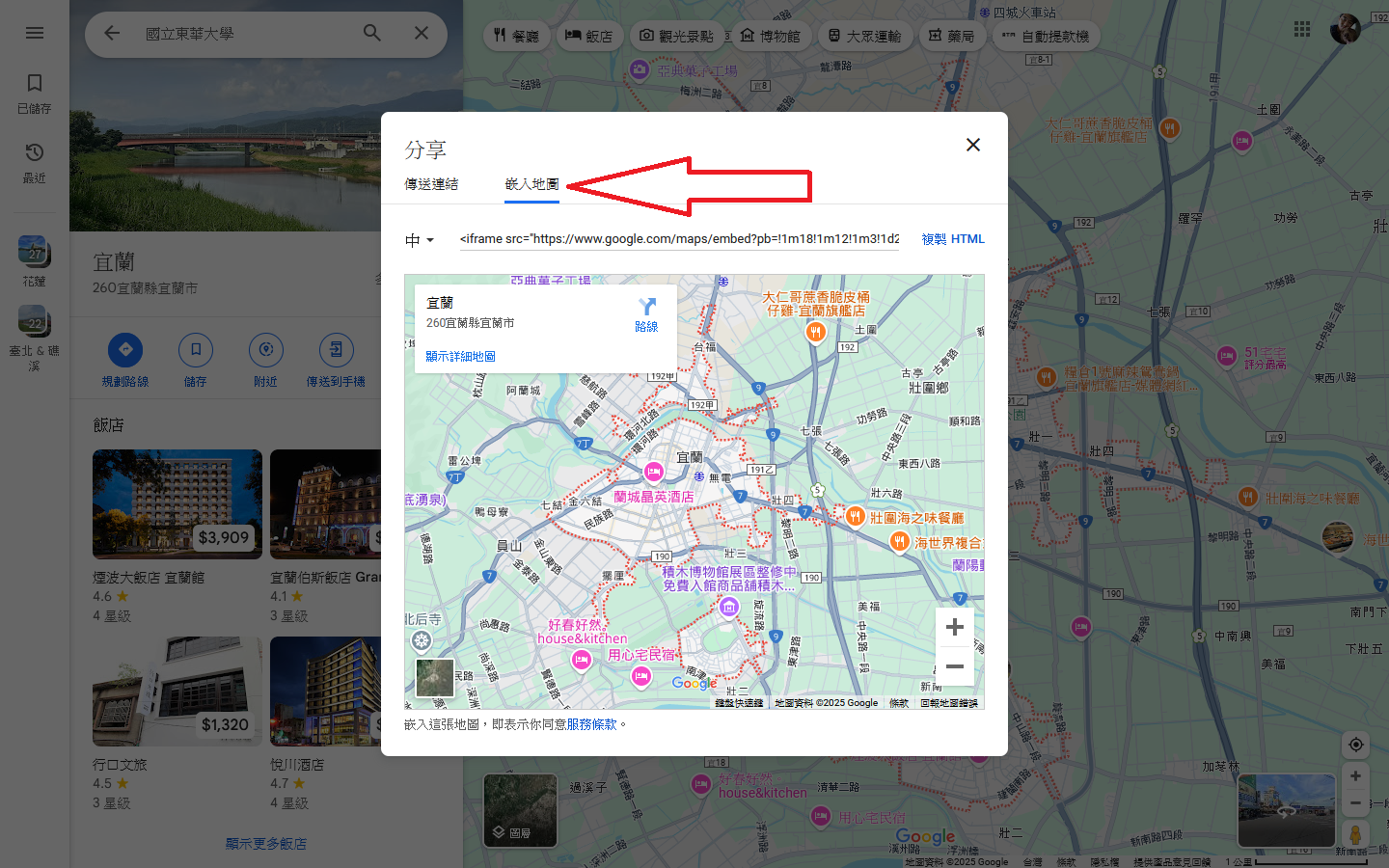 接著點選嵌入地圖