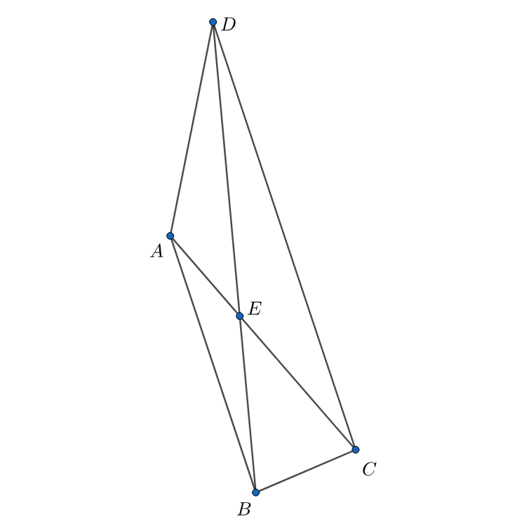 $$ \begin{align*} \overrightarrow{AE} & = \frac{5}{3 + 5} \overrightarrow{AB} + \frac{3}{3 + 5} \overrightarrow{AD} \\ & = \frac{5}{8} (2, -6) + \frac{3}{8} (1, 5) \\ & = \left( \frac{13}{8}, \frac{-15}{8} \right) \\ & \ne \left( \frac{3}{2}, \frac{1}{2} \right) \end{align*} $$故 (3) 錯誤。